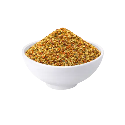 Ingredientes: Cebola desidratada, Alho desidratado, Sal, Pimentão vermelho em flocos, Tomate em flocos, Mostarda em grão, Cúrcuma moída, Salsa desidratada, Cebolinha, Óleo de soja, Antiumectante fosfato tricálcico
