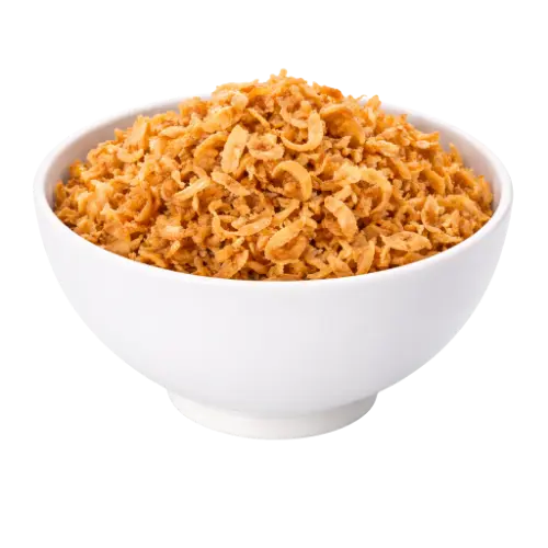 A cebola crispy é um produto elaborado a partir de cebolas selecionadas que passam por processo de corte em tiras finas, empanamento e fritura controlada, resultando em textura crocante e sabor marcante característico. Apresenta coloração dourada e aroma intenso, sendo amplamente utilizada como complemento gastronômico em preparações culinárias.
