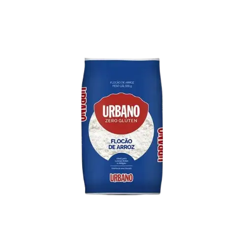 O flocão de arroz Urbano é uma farinha de arroz flocada 100% natural, obtida a partir de grãos selecionados submetidos a processamento controlado que preserva suas características sensoriais. Apresenta textura granulada e sabor suave, sendo ideal para diversas preparações culinárias como cuscuz, cremes, mingaus e bolos.