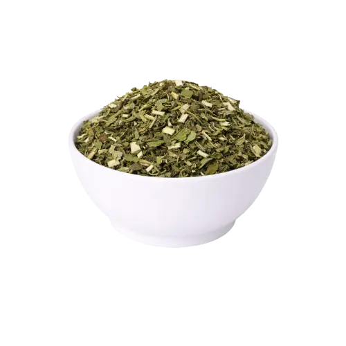 Valorizada pelo uso tradicional, é associada ao bem-estar geral e contém compostos naturais como vitaminas, minerais e antioxidantes presentes nas folhas. Sua forma desidratada facilita o preparo e armazenamento, preservando características sensoriais e versatilidade de aplicação.