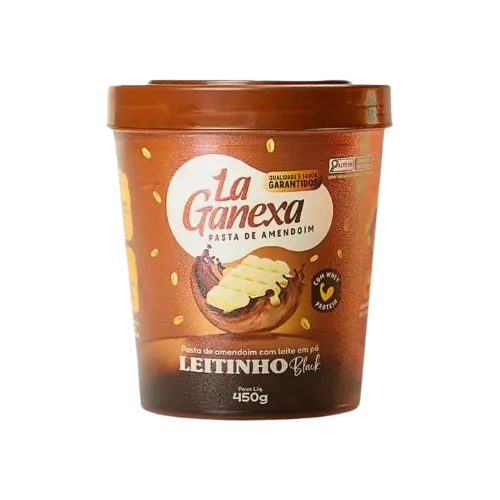 A Pasta de Amendoim Leitinho Black com Whey Protein La Ganexa é uma combinação cremosa de amendoim natural e integral, enriquecida com whey protein e notas de chocolate branco e leite em pó, oferecendo sabor intenso e textura aveludada. É livre de glúten e açúcar adicionado, sendo ideal para dietas restritivas e para quem busca alto valor nutricional.
