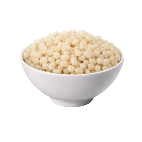 A canjica branca é um produto obtido a partir de grãos selecionados de milho branco seco, descascados e preparados para uso culinário, apresentando coloração clara característica e textura firme antes do cozimento. Amplamente utilizada na gastronomia tradicional, é base para preparações típicas, especialmente doces, sendo valorizada por sua versatilidade e sabor suave.
