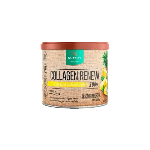 O Collagen Renew sabor abacaxi com hortelã da Nutrify é um suplemento alimentar formulado à base de peptídeos de colágeno hidrolisado, desenvolvido para preparo prático e consumo diário. Apresenta perfil sensorial refrescante que combina notas frutadas de abacaxi com o frescor da hortelã, proporcionando uma bebida leve e agradável.