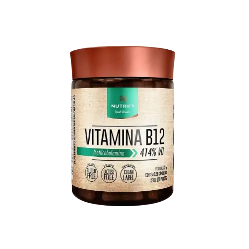 A Vitamina B12 em Cápsulas da Nutrify é um suplemento alimentar formulado com metilcobalamina, a forma ativa e natural da vitamina B12, ideal para complementar a ingestão diária desse nutriente essencial.