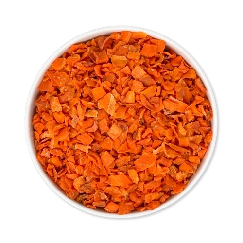 A Cenoura em Flocos é um produto natural obtido a partir de cenouras frescas que passam por um processo de desidratação, transformando-as em pequenos flocos. Esse método de produção concentra o sabor natural e prolonga a vida útil do produto, mantendo seus nutrientes essenciais. Com coloração alaranjada vibrante, odor e sabor característicos, a cenoura em flocos é uma solução prática e versátil para a culinária. É ideal para o uso em saladas, bolos, sucos, cremes, refogados, purês e outros preparos.