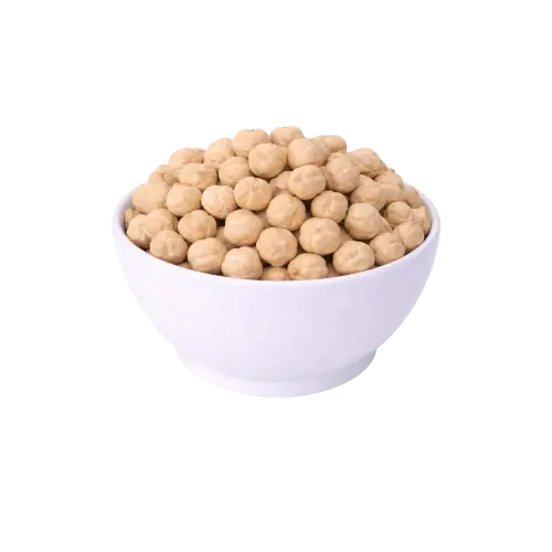 O grão-de-bico 12 mm é uma leguminosa selecionada (Cicer arietinum), classificada por calibre para apresentar tamanho uniforme e qualidade visual superior. Caracteriza-se por sua coloração clara, formato arredondado e textura firme quando seco, sendo amplamente utilizado em diversas preparações culinárias.