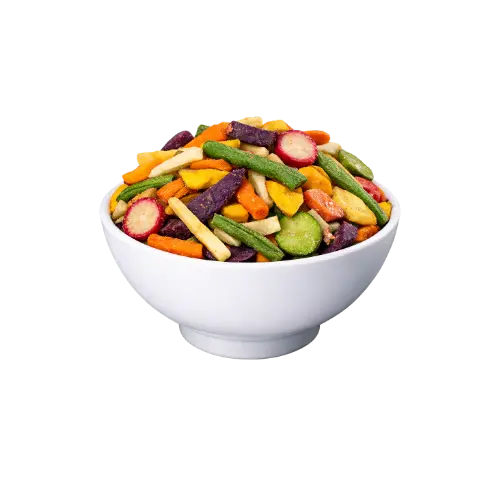 O Mix de Vegetais Desidratados com Batata Doce é uma combinação cuidadosamente selecionada de vegetais que passam pelo processo de desidratação. Este processo conserva o sabor, os nutrientes e proporciona uma textura mais concentrada, mantendo vitaminas, minerais e fibras essenciais. Este mix é prático, versátil e ideal para ser utilizado como snack ou em receitas variadas. Sua coloração vibrante e sabor característico agregam qualidade e visual atrativo aos pratos.