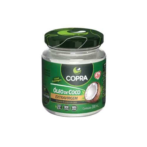 O Óleo de Coco Extra Virgem Copra é um produto 100% natural, obtido por prensagem a frio da polpa do coco, sem processos de refinamento, hidrogenação ou adição de conservantes. Rico em ácidos graxos de cadeia média (TCM), como ácido láurico e ácido caprílico, além de conter vitamina E e ácidos graxos como Ômega 6 e Ômega 9, preserva suas características nutricionais naturais. É livre de gordura trans, sendo amplamente utilizado na alimentação e também em aplicações cosméticas.