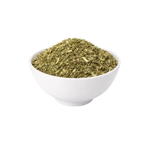 Folhas secas selecionadas, de coloração verde-amarronzada.