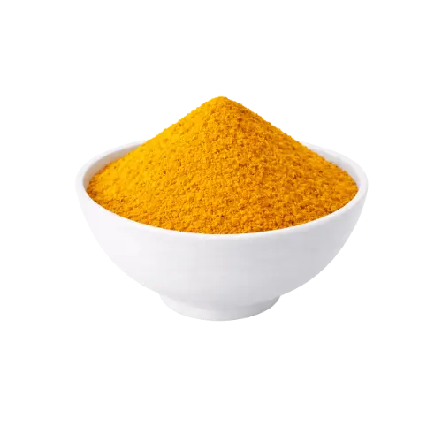 A cúrcuma em pó, também conhecida como açafrão-da-terra, açafrão-da-índia ou gengibre-dourado, é uma especiaria amplamente utilizada na gastronomia por seu sabor levemente amargo e aroma terroso, além de sua coloração amarelo intenso, que confere um aspecto característico aos pratos.
